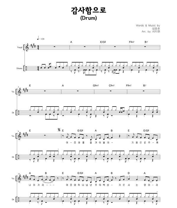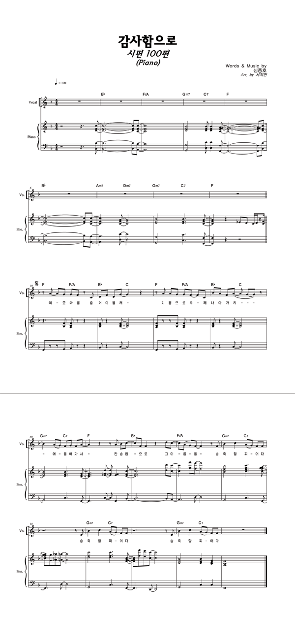 | 감사함으로 | 성가 2부 + 피아노 반주 |
