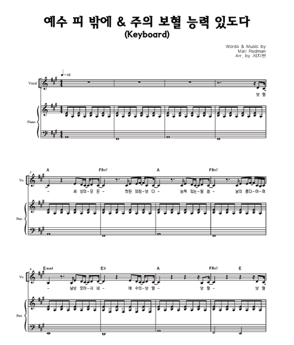 | 예수 피 밖에 | 성가 3부 + 피아노 반주 |