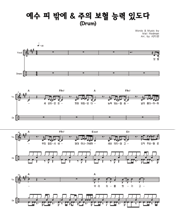 | 예수 피 밖에 | 성가 4부 + 피아노 반주 |