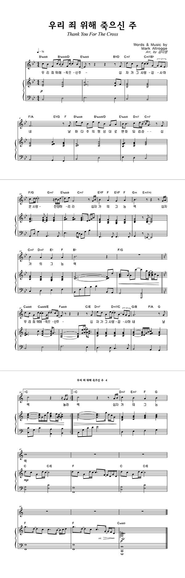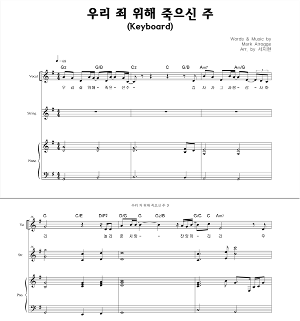 | 우리 죄 위해 죽으신 주 | 성가 3부 + 피아노 반주 |