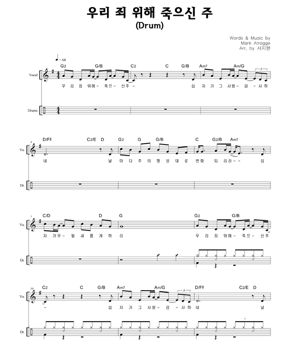 '우리 죄 위해 죽으신 주' 의 다른 악보형식