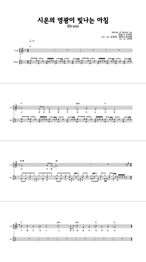 '시온의 영광이 빛나는 아침 (전용희 편곡)' 의 다른 악보형식
