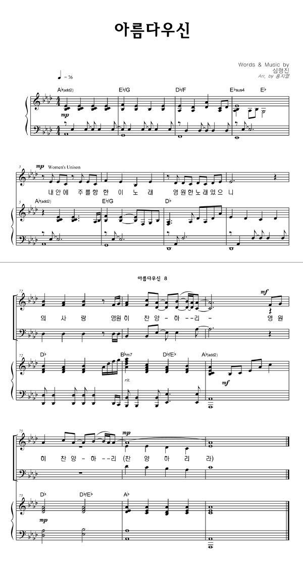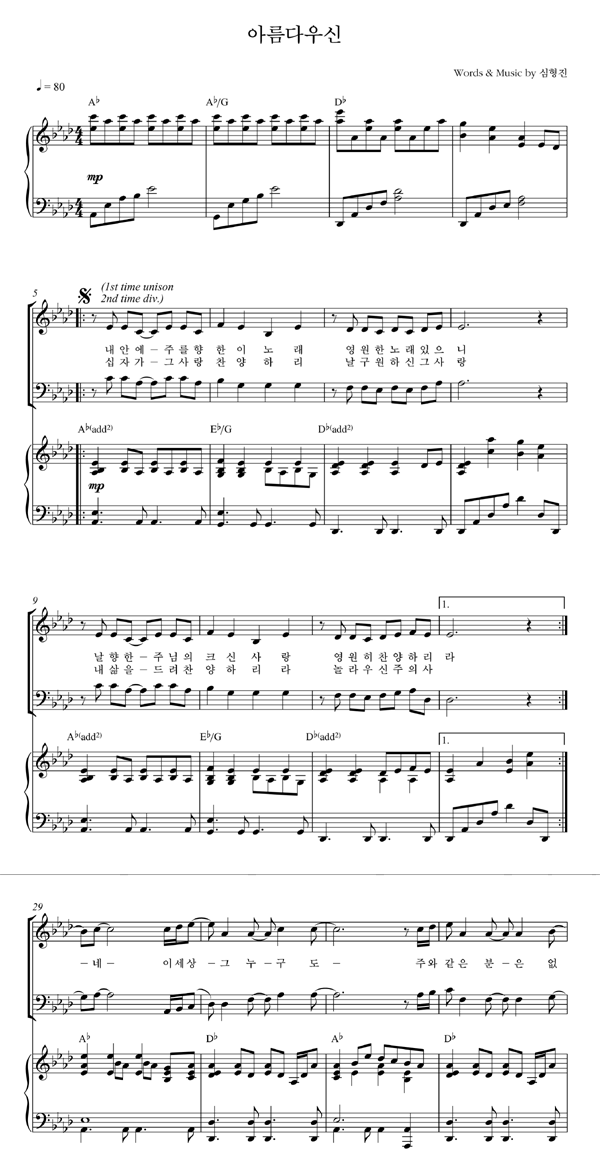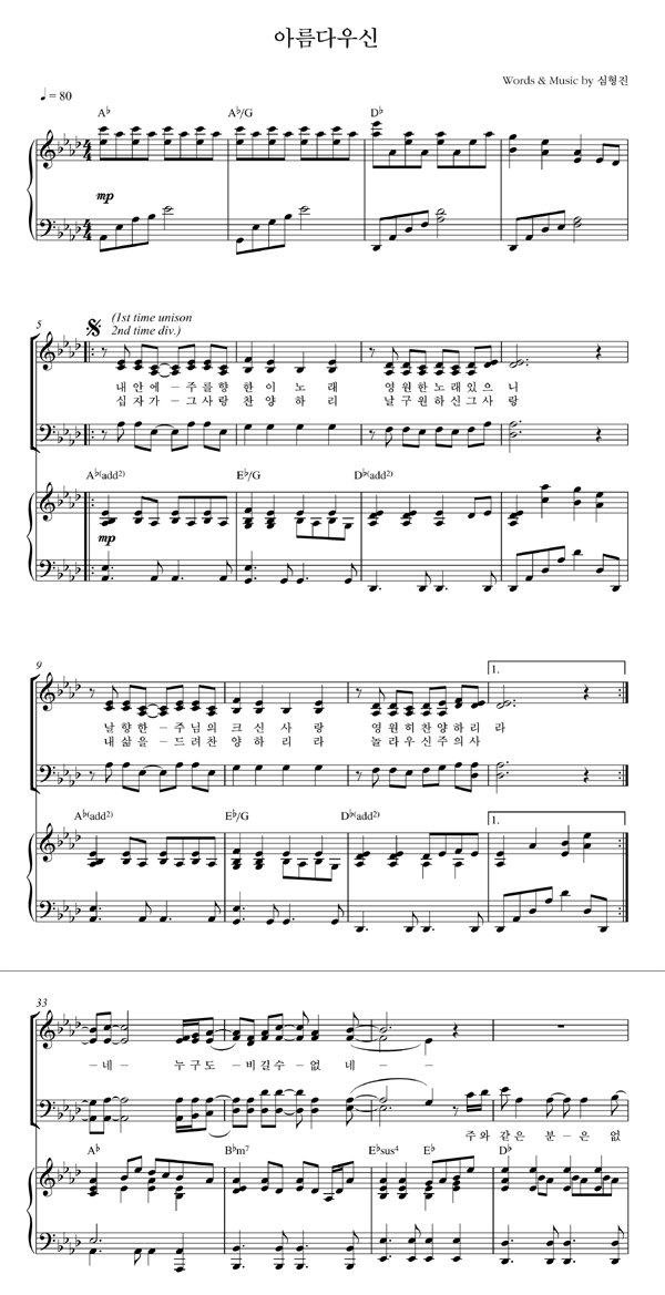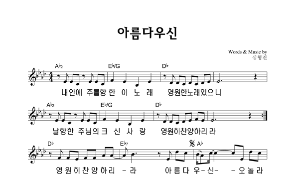 | 아름다우신 | 성가 2부 + 피아노 반주 |