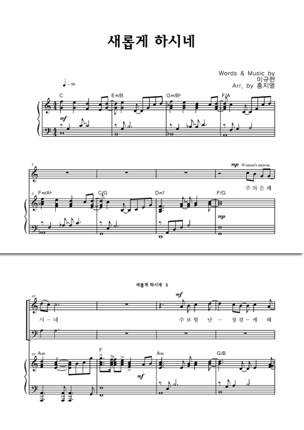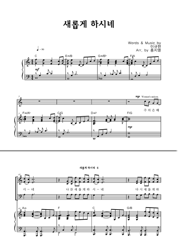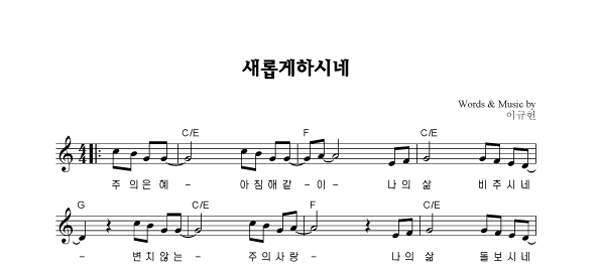 | 새롭게 하시네 | 성가 2부 + 피아노 반주 |