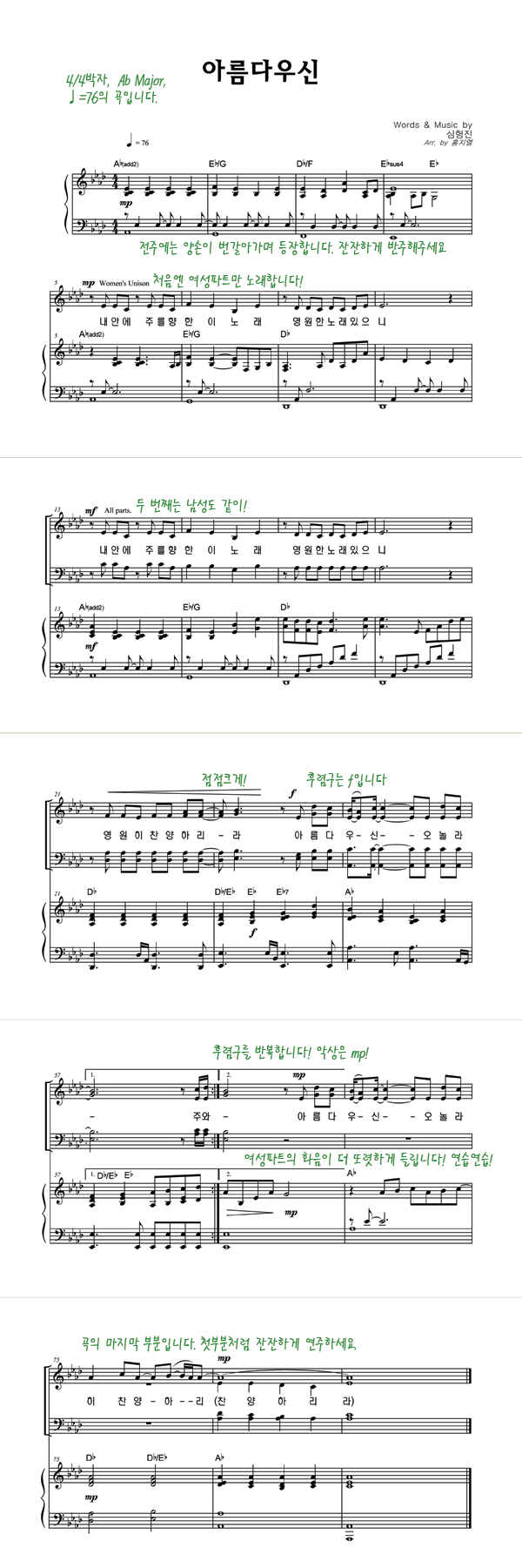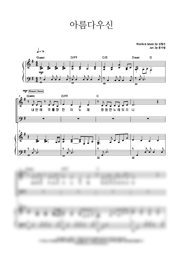 | 아름다우신 | 성가 3부 + 피아노 반주 |