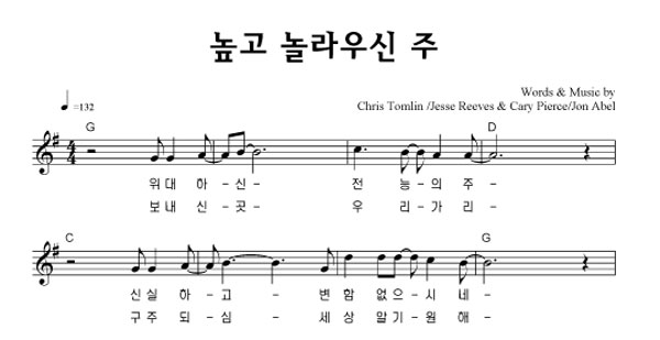 | 높고 놀라우신 주 | 단선 |