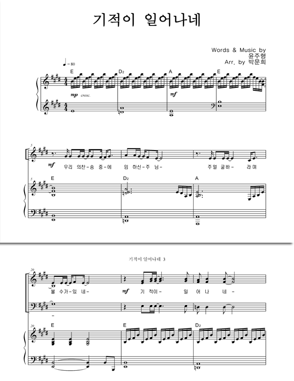 | 기적이 일어나네 | 성가 4부 + 피아노 반주 |