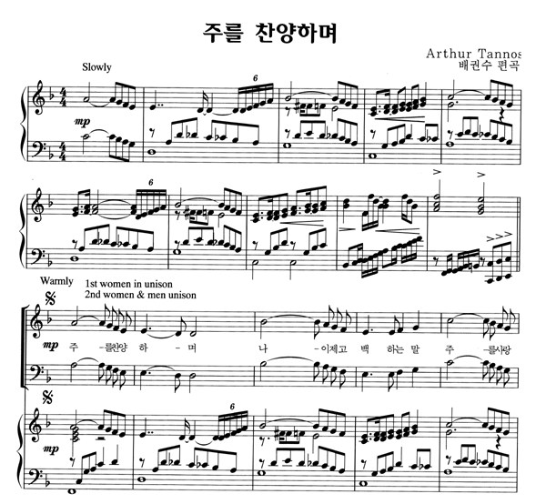 | 주를 찬양하며 | 성가 4부 + 피아노 반주 |