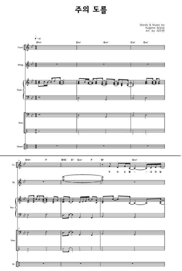 | 주 품에 큰글씨 | 성가 4부 + 피아노 반주 |