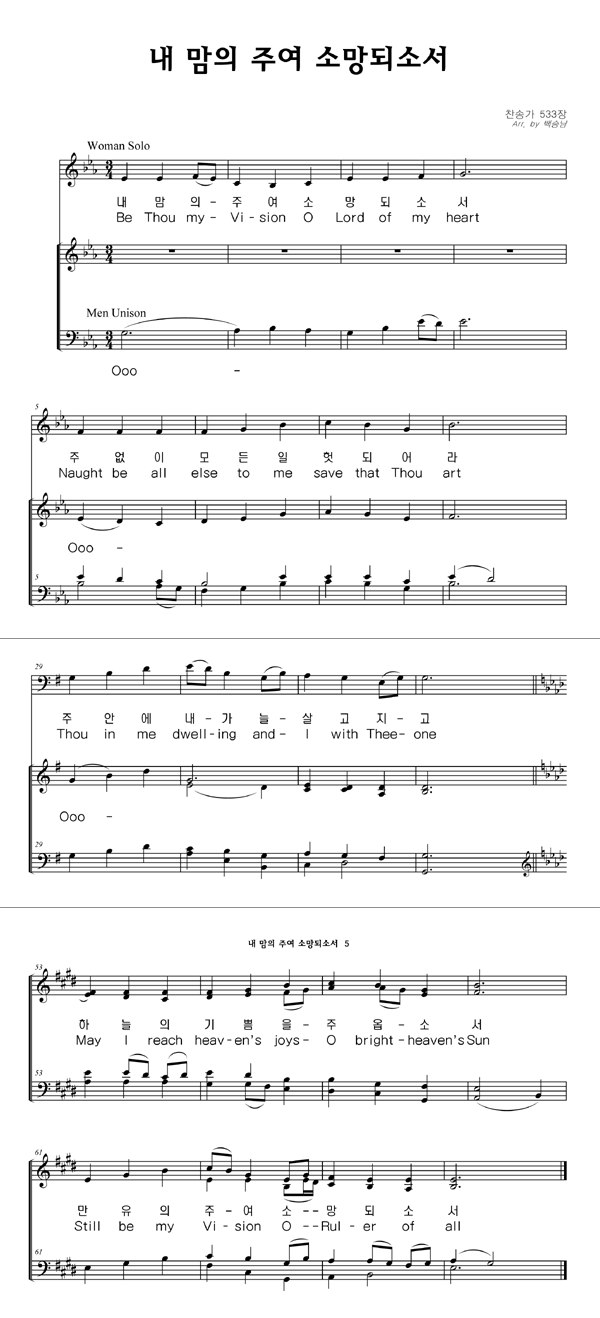 | 내 맘의 주여 내 소망 되소서 | 성가 4부 + 피아노 반주 |