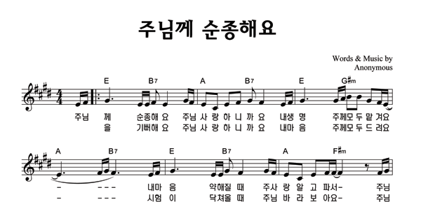 | 주님께 순종해요 | 단선 |