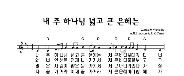 1. 내 주 하나님 넓고 큰 은혜는 저 큰 바다 보다깊다
