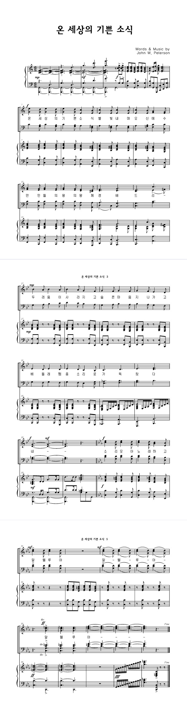 '온 세상의 기쁜소식' 의 다른 악보형식