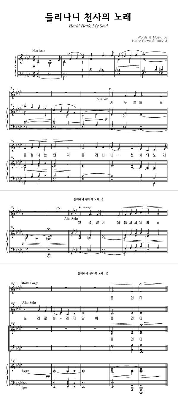 '들리나니 천사의 노래' 의 다른 악보형식