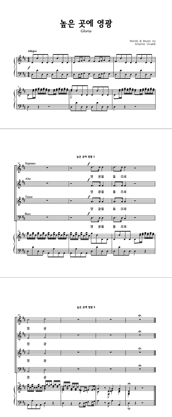 '높은 곳에 영광' 의 다른 악보형식