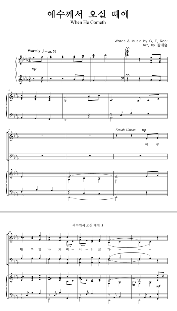 | 예수께서 오실때에 | 성가 4부 + 피아노 반주 |