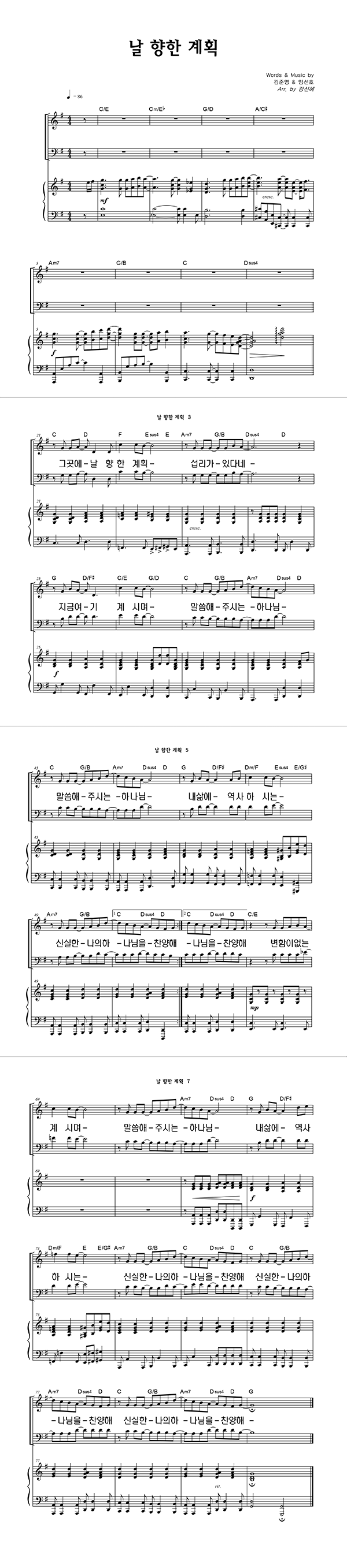 | 날 향한 계획 | 성가 3부 + 피아노 반주 |