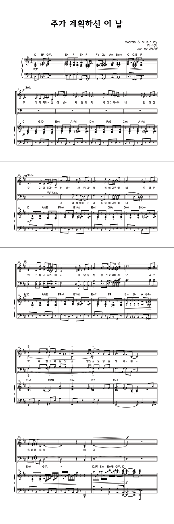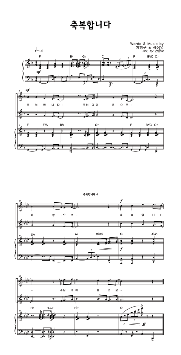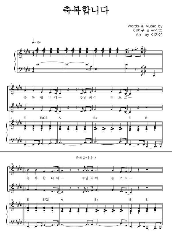 | 축복합니다 | 성가 2부 + 피아노 반주 |
