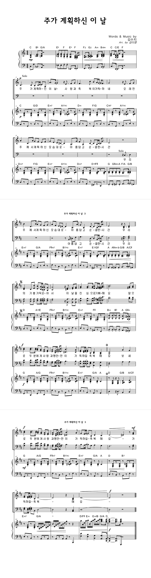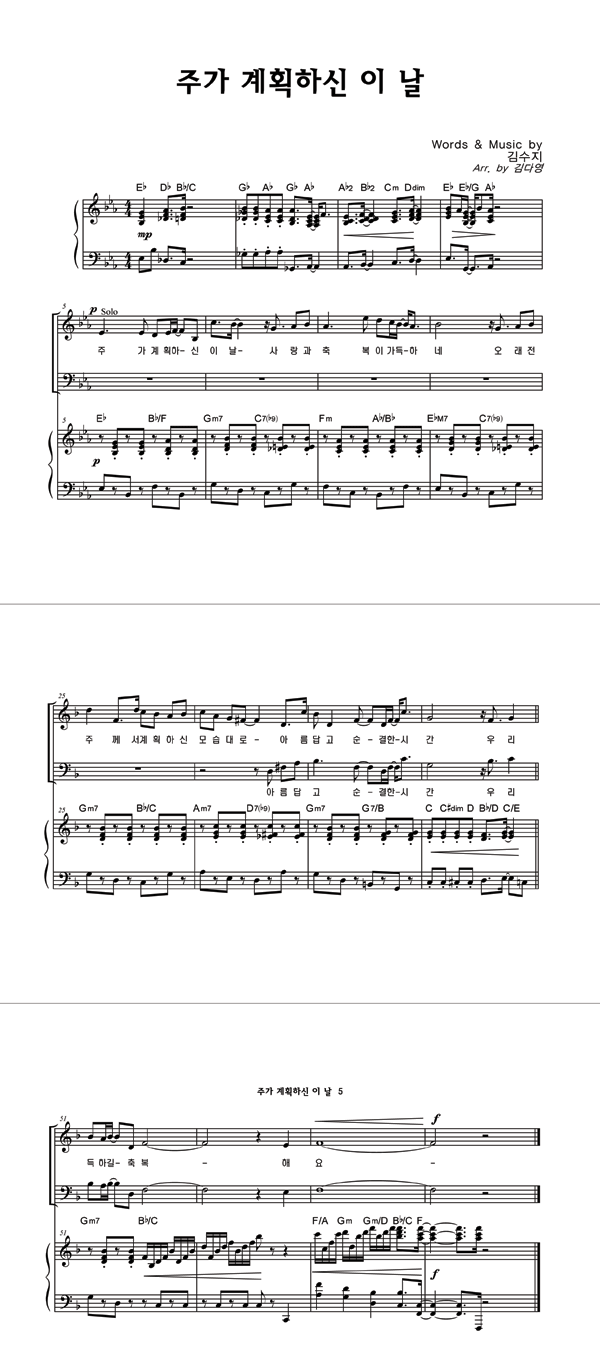 | 주가 계획하신 이 날 | 성가 3부 + 피아노 반주 |