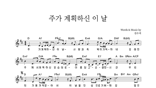 | 주가 계획하신 이 날 | 성가 2부 + 피아노 반주 |