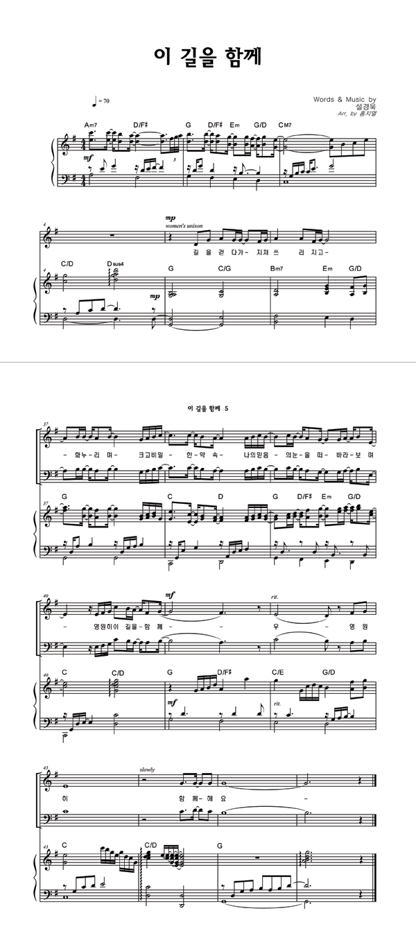 | 이 길을 함께 | 성가 2부 + 피아노 반주 |