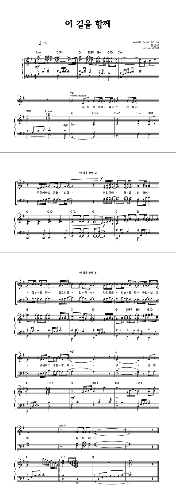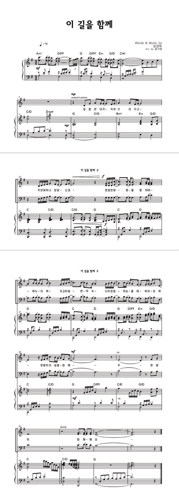 | 이 길을 함께 | 성가 3부 + 피아노 반주 |
