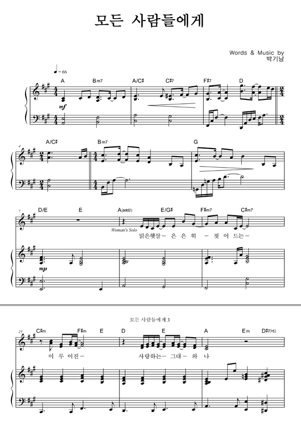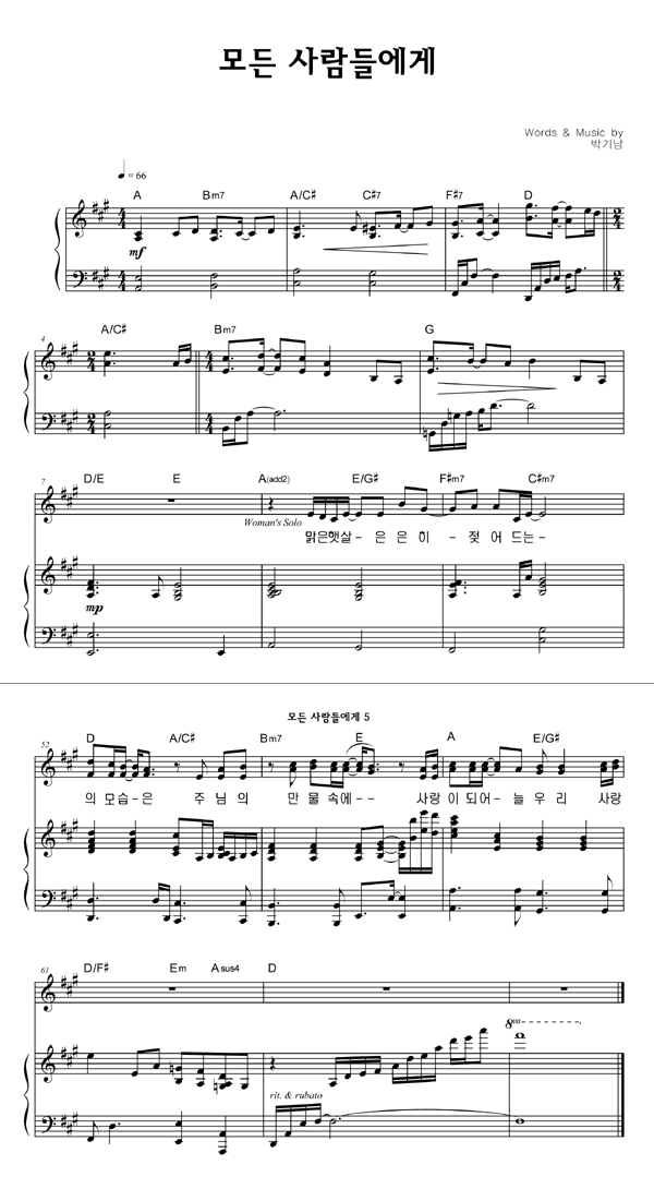 | 모든 사람들에게 | 성가 2부 + 피아노 반주 |