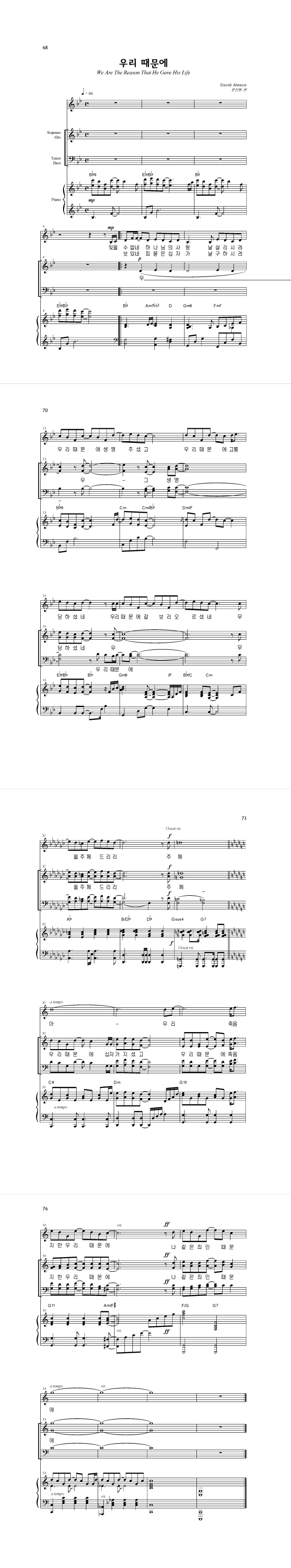 | 우리 때문에 | 성가 4부 + 피아노 반주 |