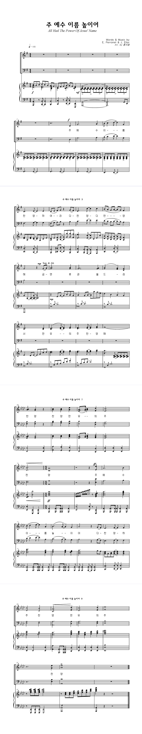 | 주 예수 이름 높이어 | 성가 4부 + 피아노 반주 |