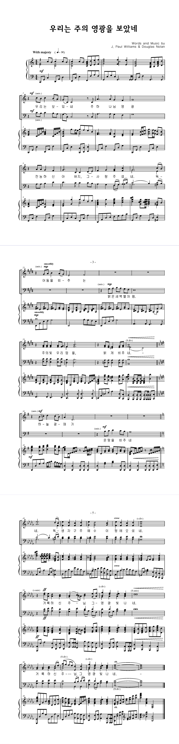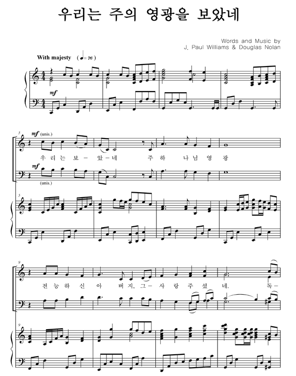 '우리는 주의 영광을 보았네' 의 다른 악보형식