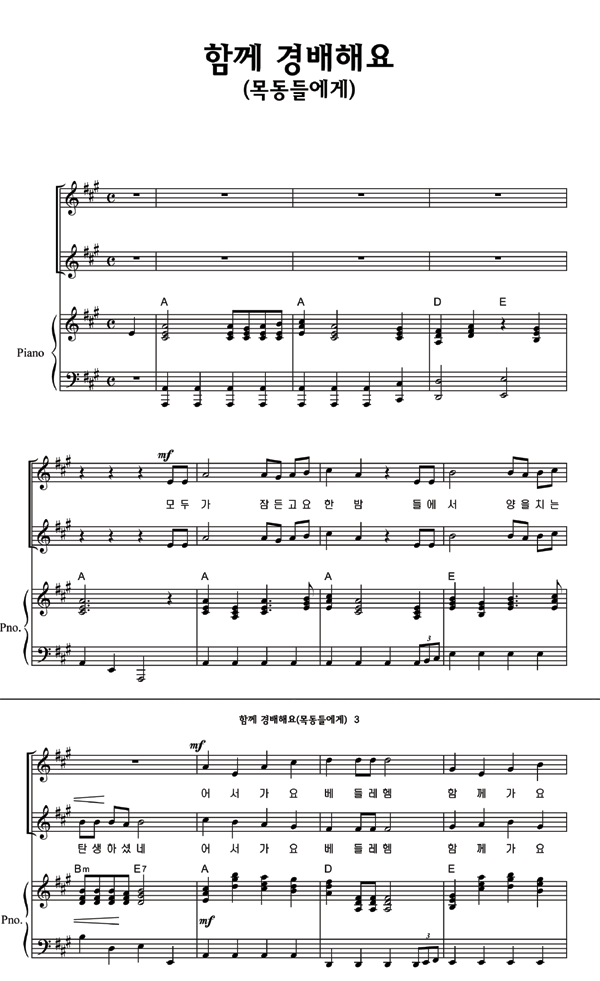 | 함께 경배해요 (목동들에게) | 성가 2부 + 어린이 |