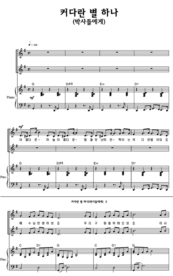 | 커다란 별 하나 (박사들에게) | 성가 2부 + 어린이 |