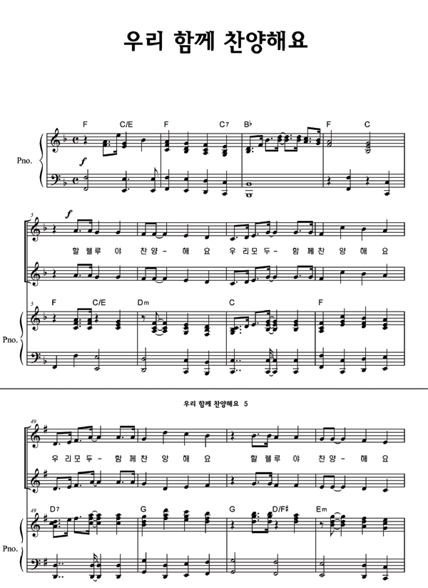 | 우리 함께 찬양해요 | 성가 2부 + 어린이 |