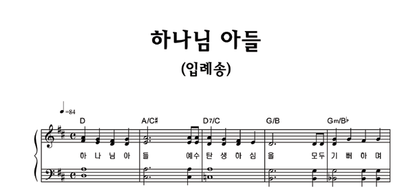 | 하나님 아들 (입례송) | 성가 2부 + 어린이 |