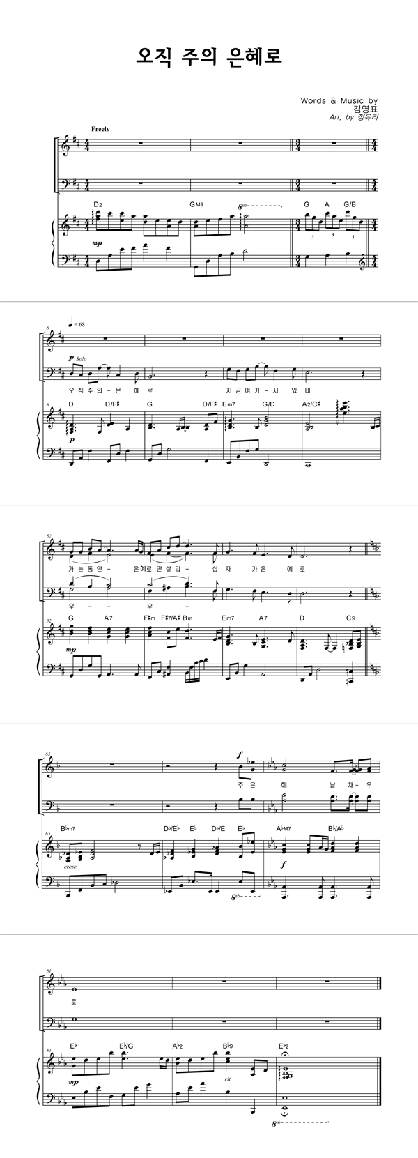 | 오직 주의 은혜로 | 성가 2부 + 피아노 반주 |