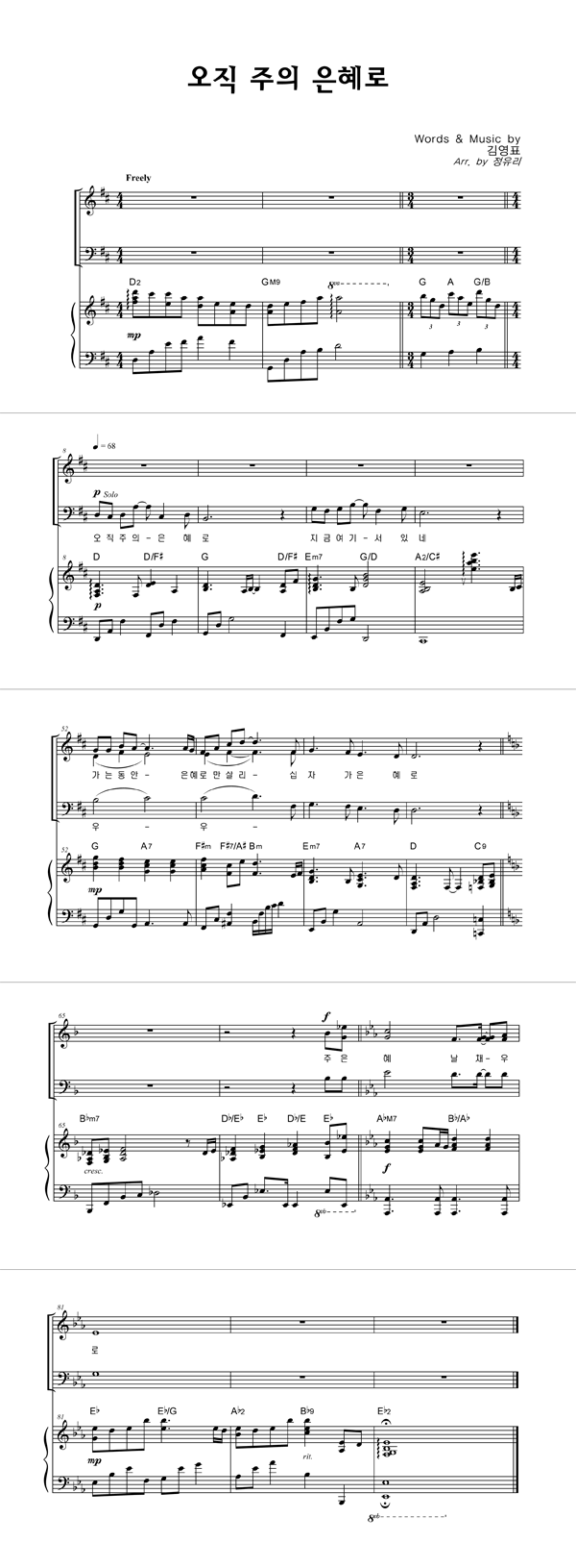 | 오직 주의 은혜로 | 성가 3부 + 피아노 반주 |