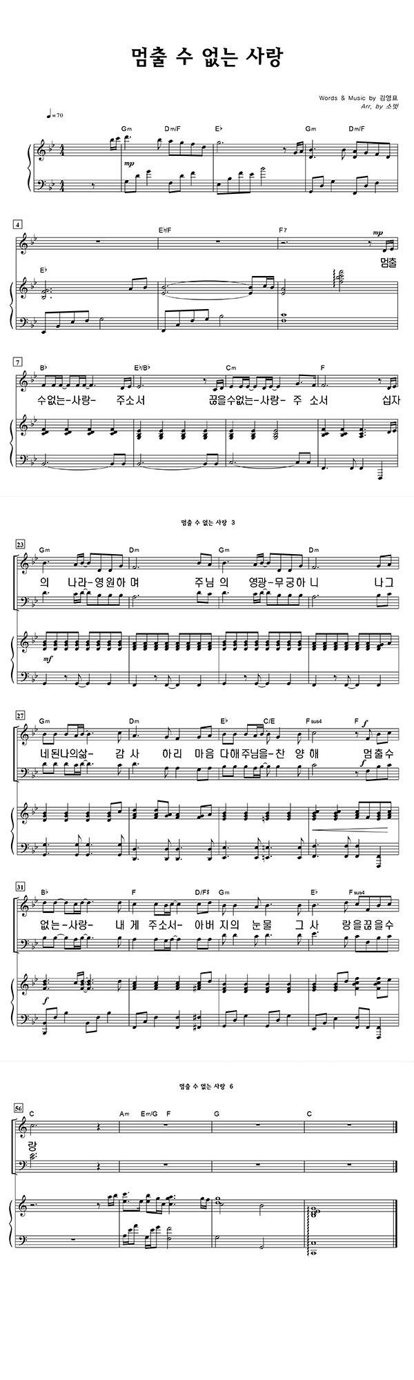 | 멈출 수 없는 사랑 | 성가 3부 + 피아노 반주 |