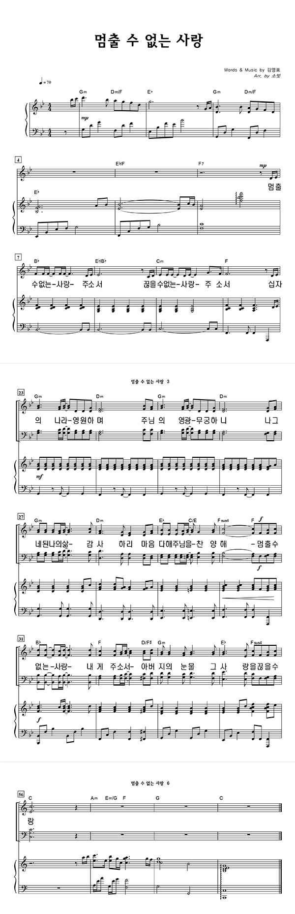 | 멈출 수 없는 사랑 | 성가 2부 + 피아노 반주 |