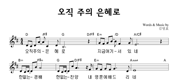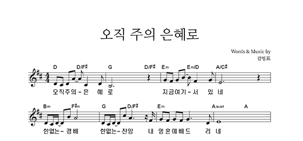 | 오직 주의 은혜로 | 성가 4부 + 피아노 반주 |