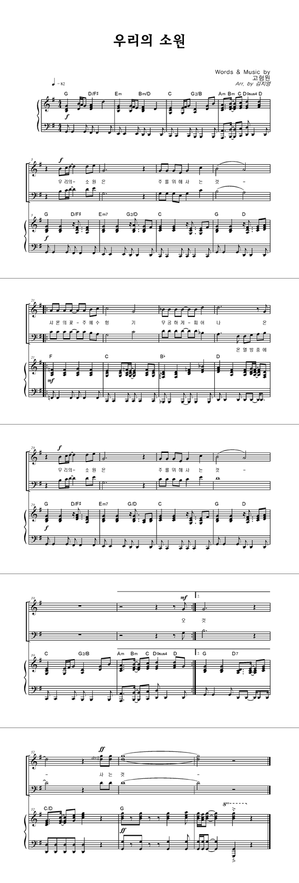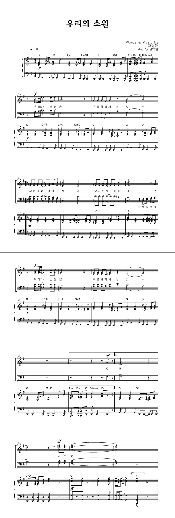 | 우리의 소원 | 성가 2부 + 피아노 반주 |