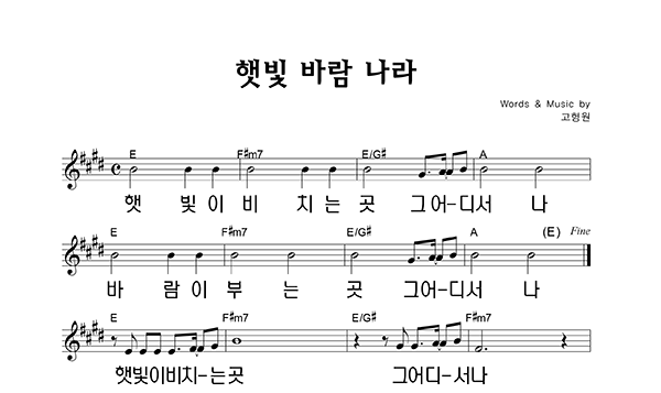 | 햇빛 바람 나라 큰글씨 | 단선 |