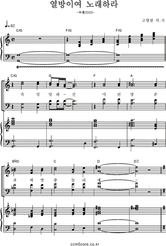 | 열방이여 노래하라 | 성가 4부 + 피아노 반주 |