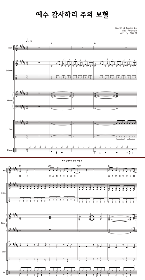 '예수 감사하리 주의 보혈' 의 다른 악보형식