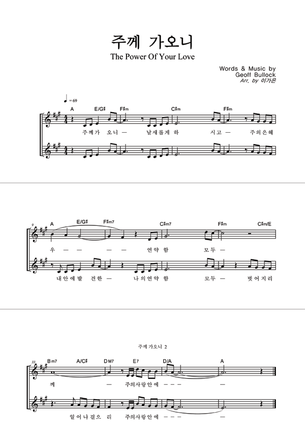 | 오직 예수 다른 이름은 없네 | 성가 2부 + 피아노 반주 |