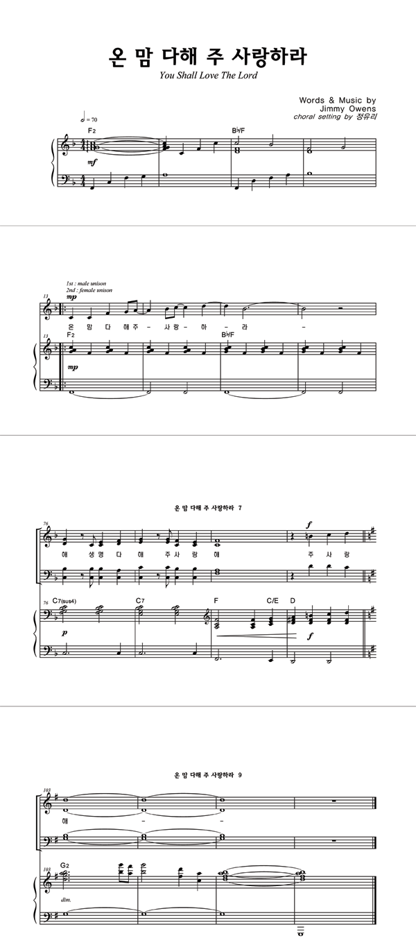 | 온 맘 다해 주 사랑하라 | 성가 4부 + 피아노 반주 |