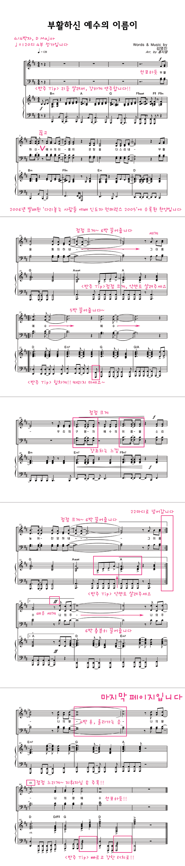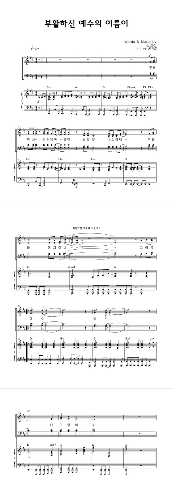 | 부활하신 예수의 이름이 | 성가 3부 + 피아노 반주 |