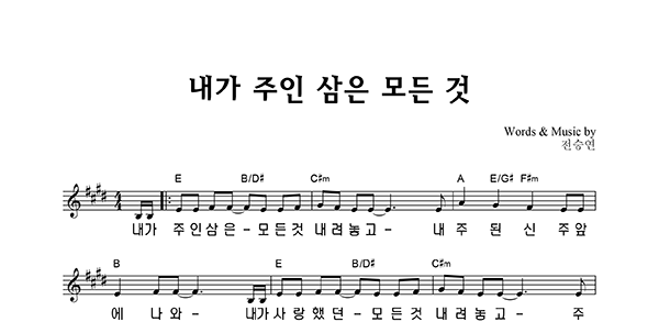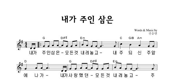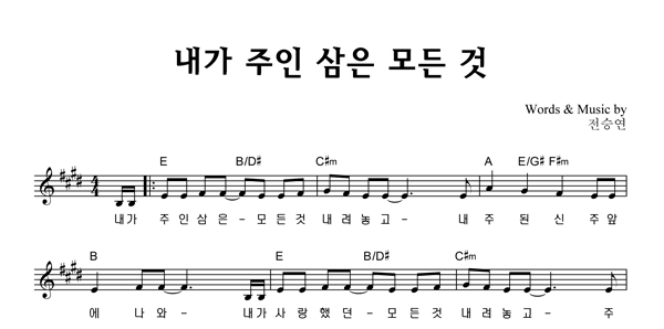 | 내가 주인 삼은 큰글씨 | 성가 4부 + 피아노 반주 |
