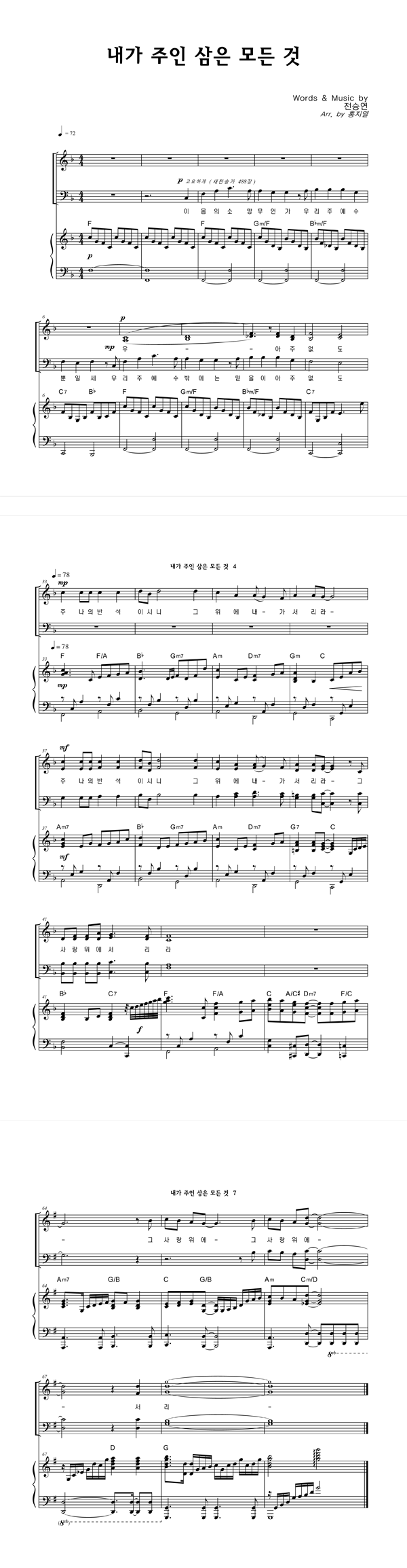 | 내가 주인 삼은 | 성가 4부 + 피아노 반주 |