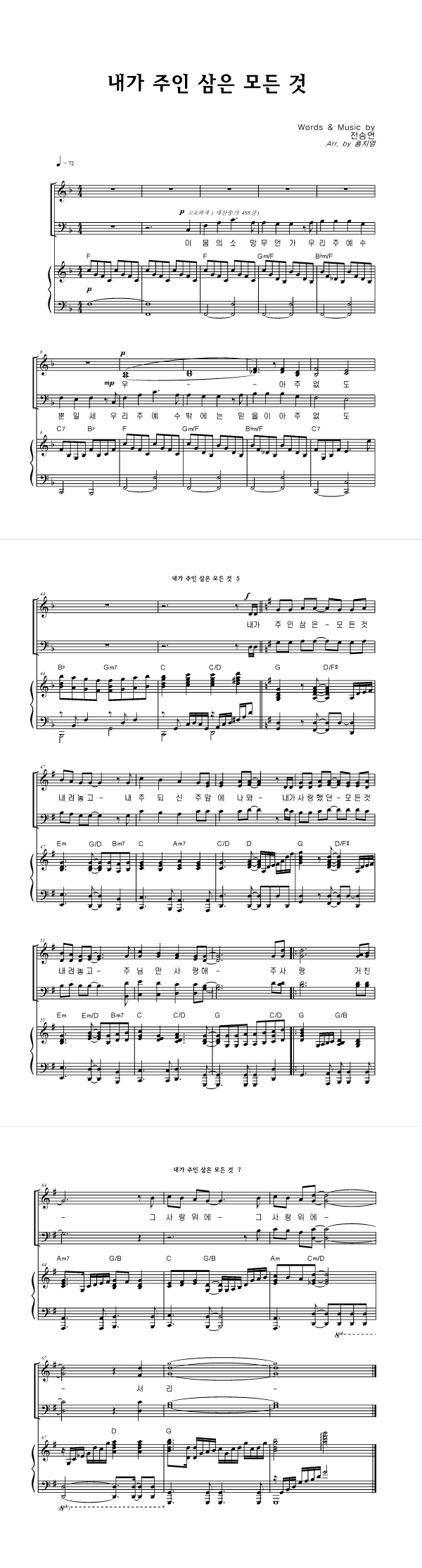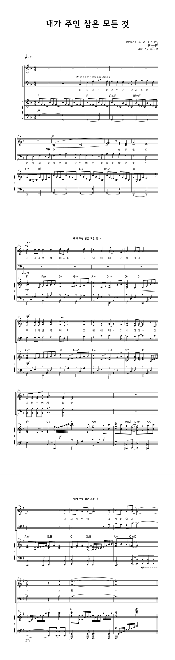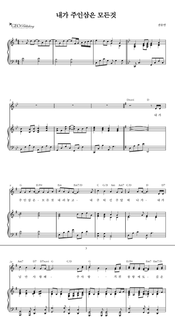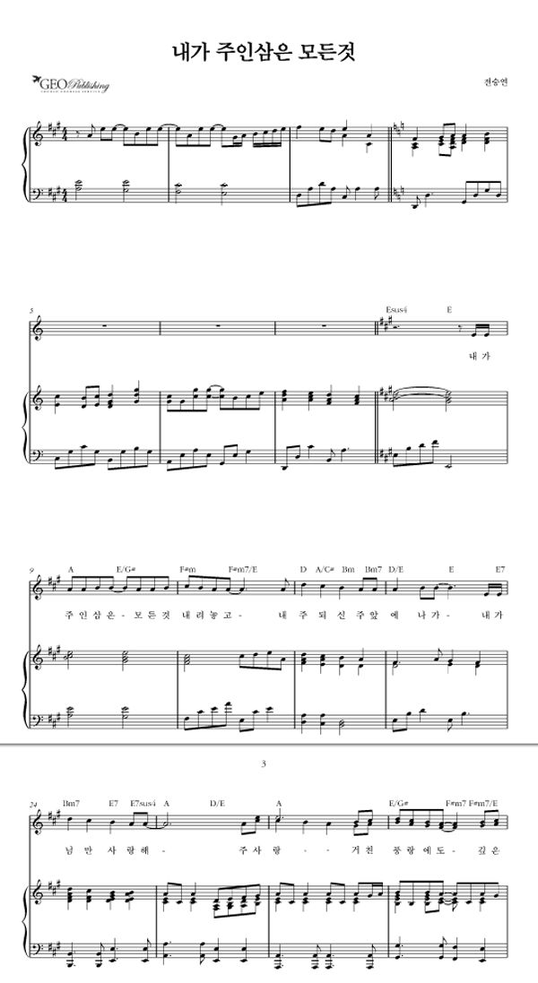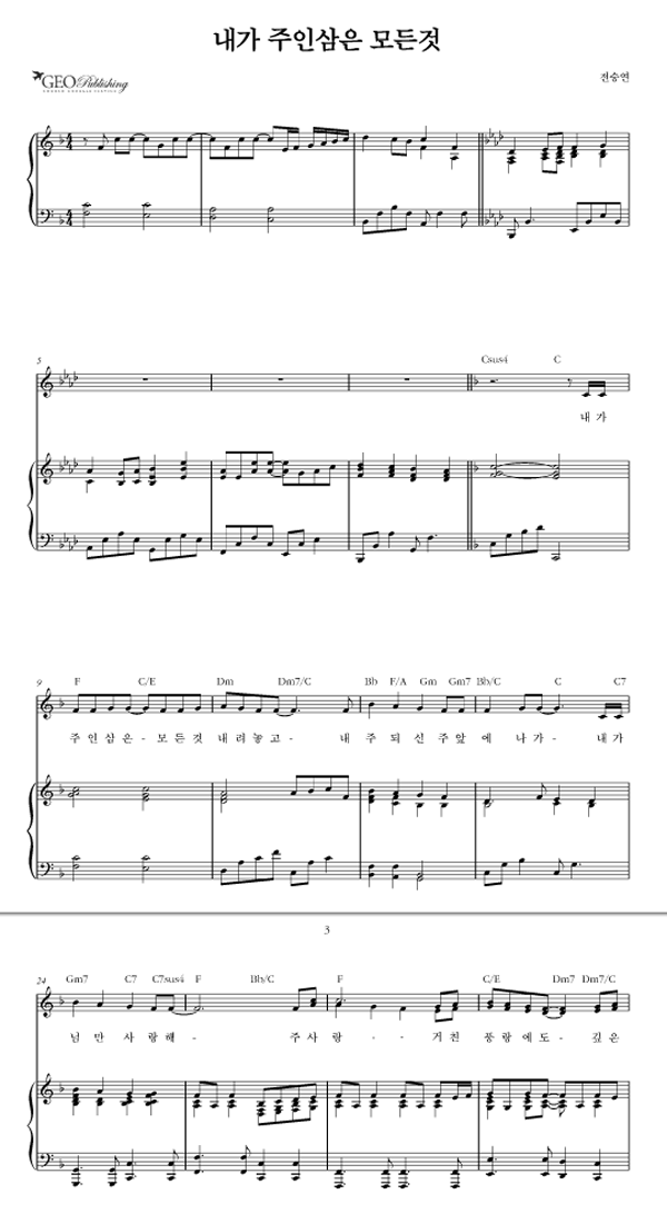| 내가 주인 삼은 | 성가 3부 + 피아노 반주 |