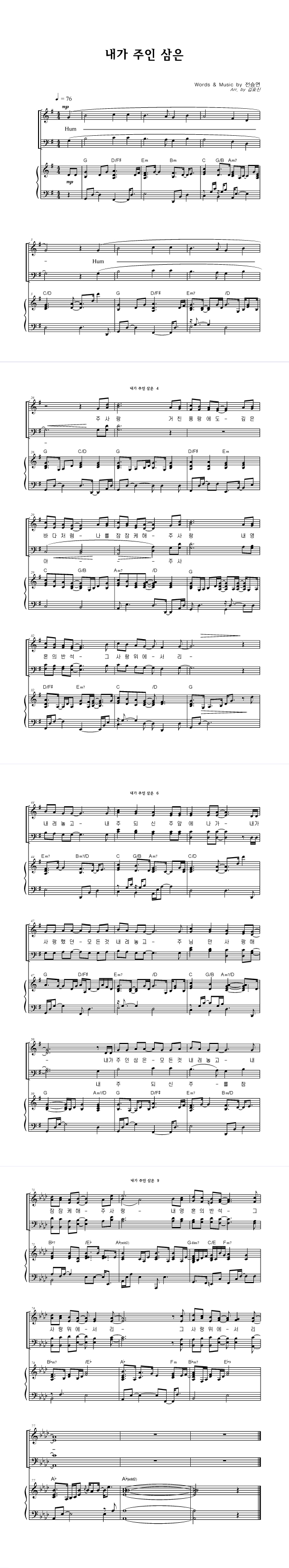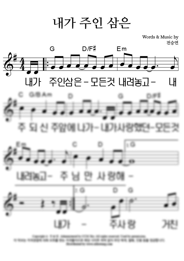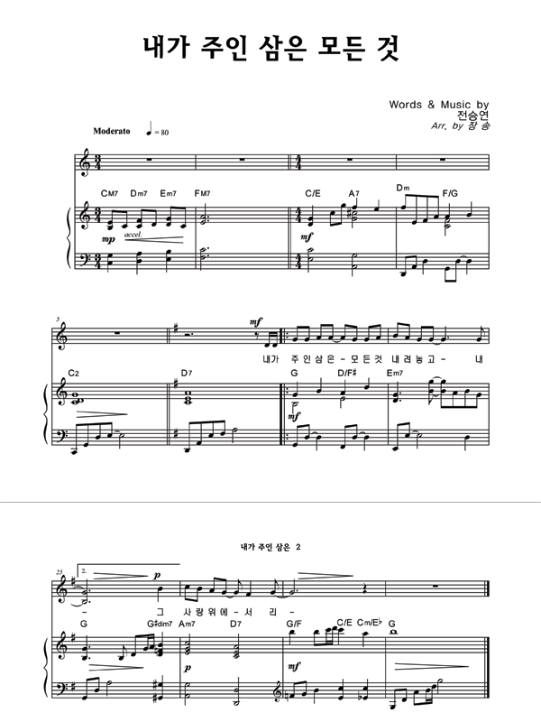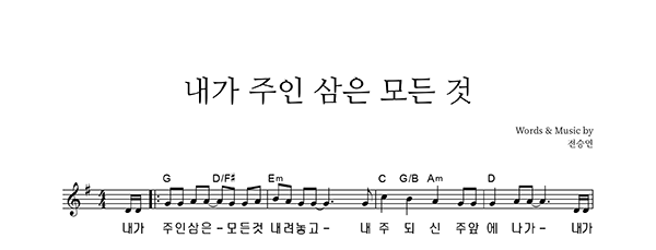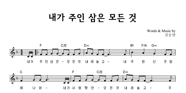 | 내가 주인 삼은 | 성가 2부 + 피아노 반주 |